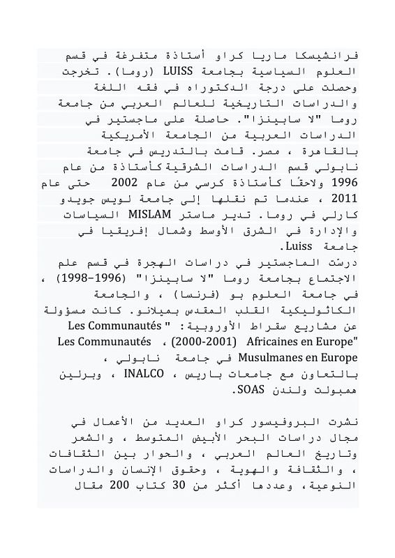 Francesca Maria Corrao is a full professor at the Department of Political Sciences of the LUISS University (Rome), and Director of the Master Degree program in Institution and Economy of the Middle Eastern Countries (MISLAM). She has a degree in Middle Eastern History from the University of Rome "La Sapienza", a master's degree in Arabic Studies from the American University of Cairo, Egypt. Professor Corrao completed her Ph.D. in Islamic Studies at the University of Rome "La Sapienza" and entered the Eastern University of Naples as an associate professor in 1996, and subsequently as a full professor (2002).